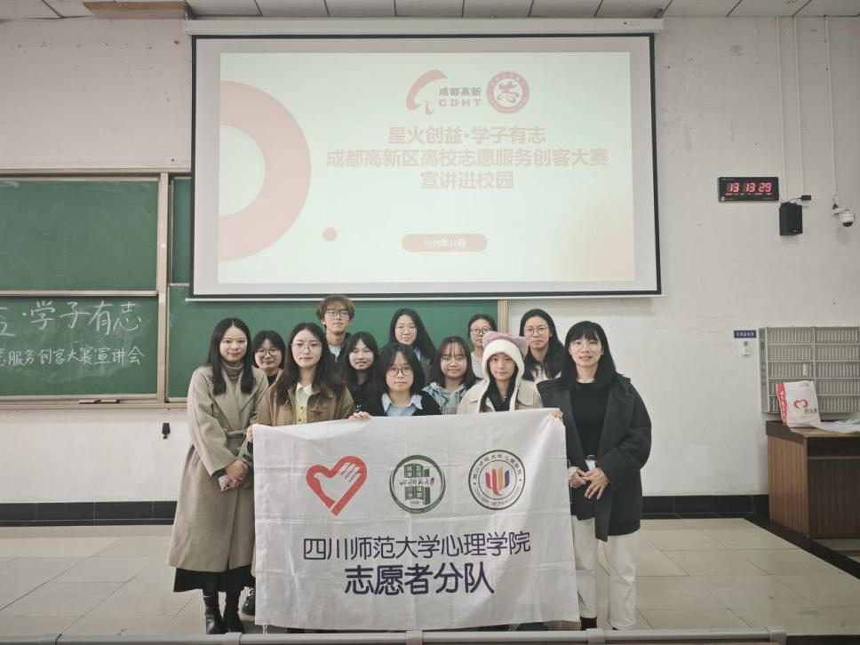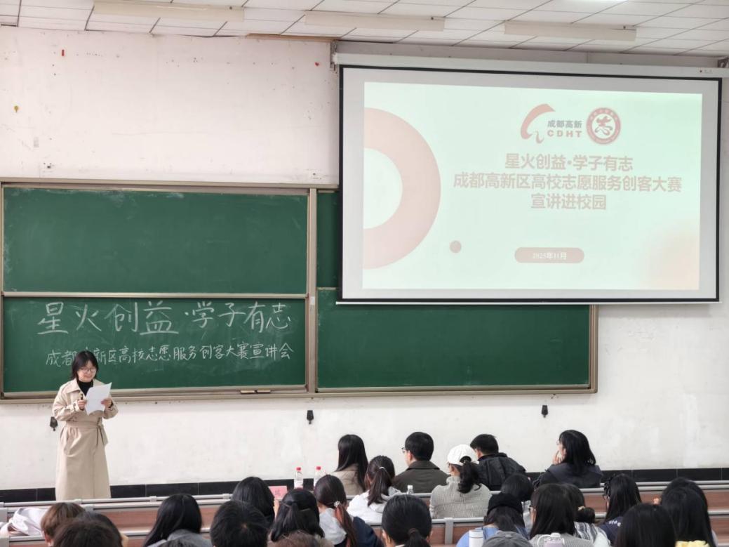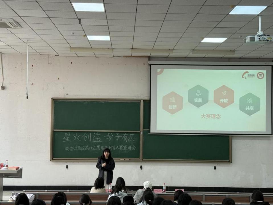 11月13日中午,“星火创益・学子有志”——成都高新区高校志愿服务创客大赛宣讲会于四川师范大学狮子山校区顺利举办。本次活动由中共成都高新区工委社会工作部主办,成都云公益发展促进会承办,四川师范大学心理学院分团委社会实践与志愿服务部协办,旨在帮助我院学生全面了解大赛规则、掌握备赛要点,进一步弘扬志愿服务精神。