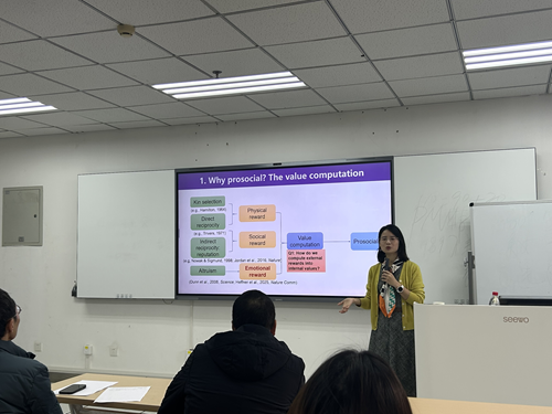 11月28日上午,清华大学心理与认知科学系副主任、长聘副教授、博士生导师伍珍应邀来我院为师生做题为“亲社会行为发展的情绪和计算机制:人类与大语言模型的比较”的前沿学术交流。讲座由心理学院院长靳宇倡教授主持。