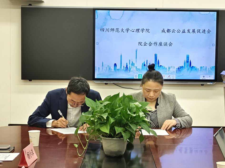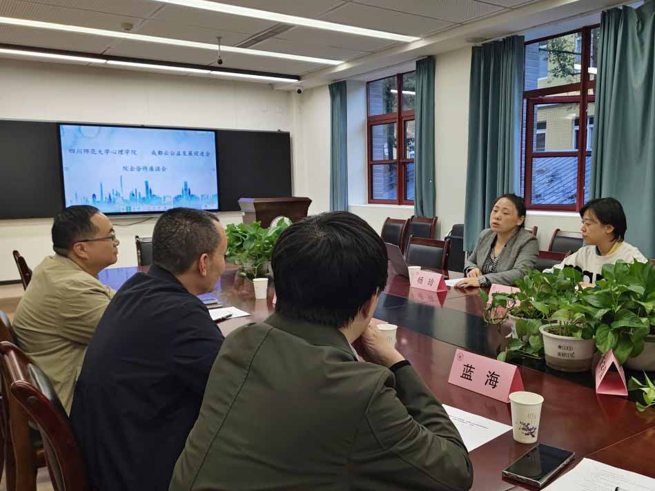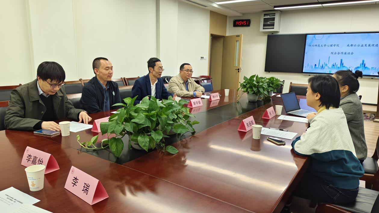 为深化产教融合,搭建实践育人平台,2025年10月22日,四川师范大学心理学院与成都云公益发展促进会在四川师范大学第二办公区211会议室举行实习实训基地授牌仪式。心理学院院长靳宇倡、党委副书记、纪委书记杨程、副院长杨小洋、及学生代表,成都云公益发展促进会副会长杨玲、副秘书长朱扬帆等出席本次仪式并座谈交流。心理学院学生工作办公室主任蓝海主持本次签约仪式。