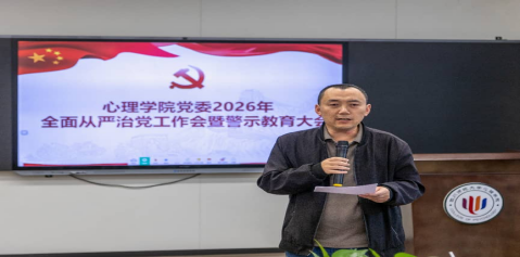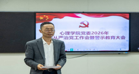 4月17日,心理学院党委召开全面从严治党工作会暨警示教育大会。学院全体领导班子、全院教职工参加会议。会议由心理学院院长靳宇倡主持。